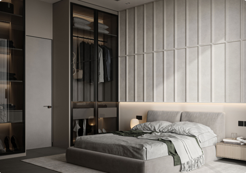 - Шкаф. Специалисты помогут подобрать идеальный вариант шкафа для спальни с учетом особенностей помещения и потребностей заказчика.